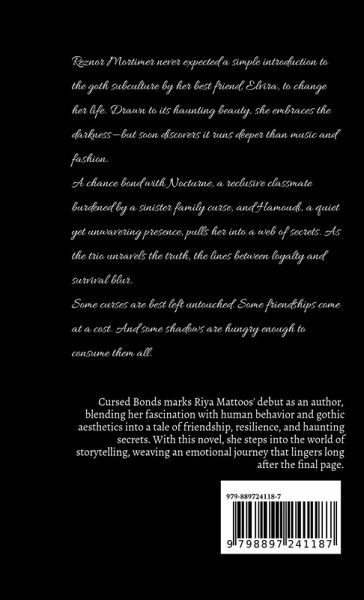 Reznor Mortimer never expected a simple introduction to the goth subculture by her best friend, Elvira, to change her life. Drawn to its haunting beauty, she embraces the darkness-but soon discovers it runs deeper than music and fashion. A chance bond with Nocturne, a reclusive classmate burdened by a sinister family curse, and Hamoudi, a quiet yet unwavering presence, pulls her into a web of secrets. As the trio unravels the truth, the lines between loyalty and survival blur. Some curses are best left untouched. Some friendships come at a cost. And some shadows are hungry enough to consume them all. Will Reznor and her friends survive the darkness that threatens to engulf them, or will they become part of a legacy they cannot escape?