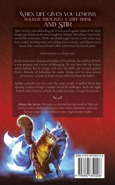 When life gives you lemons, squeeze them into a stiff drink and stir. After twenty years defending the frozen north against some of the most dangerous threats in the nine kingdoms, Rhoren "Bloodbane" has finally earned his retirement. While the blood mage's service to the realm may have ended, burning veins and aching joints remain, and Rhoren soon learns that a warmer climate offers relief from his chronic pain. And a chance at a fresh start. In the warm and relaxing atmosphere of Eastborne, the umbral elf finds a new purpose and a sense of belonging. He may have left the frozen north behind, but he brings with him the skills and strength gained from a lifetime of defending the realm. Along with his most prized possession-a book of drink recipes inherited from his father. Spilled cocktails may not carry the same weight as spilled blood, but opening a tavern brings a unique brand of challenges. With the right friends and a little bit of luck, he might just have a recipe for success.