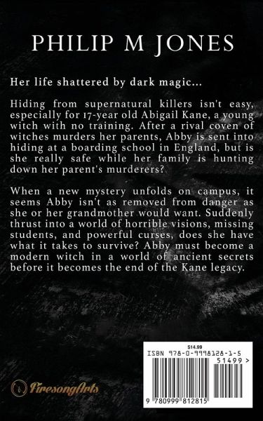 Abigail Kane always lived a perfectly normal life for a witch, that is, until she finds her parents murdered by a rival coven. With the murderer still at large, Abby is sent into hiding at a boarding school in England. But is she really safe while her family is hunting down her enemies? When a new mystery unfolds on campus, it seems Abby isn't as removed from danger as she, or her grandmother would want. Suddenly thrust into a world of horrible visions, missing students, and powerful curses, does she have what it takes to survive? One thing is for sure, hiding from supernatural killers isn't easy, and campus life isn't anything like she expected. Abby must become a modern witch in a world of ancient secrets, before it becomes the end of the Kane legacy.