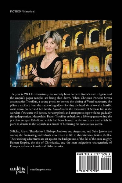 The year is 394 CE. Christianity has recently been declared Rome's state religion, and the empire's pagan temples are being shut down. When Christian Princess Serena accompanies Theofilus, a young priest, to oversee the closing of Vesta's sanctuary, she pilfers a necklace from the statue of a goddess, inciting the head Vestal to call a horrific curse down on her and her family. Cursed traces the remainder of Serena's life as she wonders if the curse will destroy her completely and attempts to cope with her gradually rising desperation. Meanwhile, Father Theofilus embarks on a lifelong quest to find the priceless antique Palladium, which had been housed in the sanctuary and which he plans to donate to the Church as a means of furthering his ecclesiastical career. Stilicho, Alaric, Theodosius I, Bishops Ambrose and Augustine, and Saint Jerome are among the fascinating individuals who return to life in this historical fiction thriller. Their exciting adventures are set against the background of the fall of the once-mighty Roman Empire, the rise of Christianity, and the mass migrations characteristic of Europe's turbulent fourth and fifth centuries.