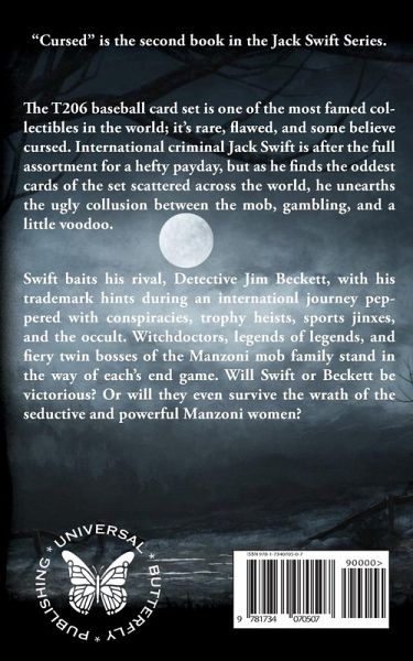 The T206 baseball card set is one of the most famed collectibles in the world; it's rare, flawed, and some believe cursed. International criminal Jack Swift is after the full assortment for a hefty payday, but as he finds the oddest cards of the set scattered across the world, he unearths the ugly collusion between the mob, gambling, and a little voodoo. Swift baits his rival, Detective Jim Beckett, with his trademark hints during an international journey peppered with conspiracies, trophy heists, sports jinxes, and the occult. Witchdocotors, legends of legends, and fiery twin bosses of the Manzoni mob family stand in the way of each's end game. Will Swift or Beckett be victorious? Or will they even survive the wrath of the seductive and powerful Manzoni women?