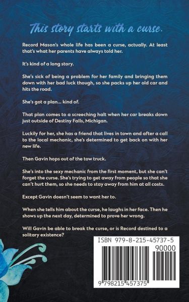 This story starts with a curse. Record Mason's whole life has been a curse, actually. At least that's what her parents have always told her. It's kind of a long story. She's sick of being a problem for her family and bringing them down with her bad luck though, so she packs up her old car and hits the road. She's got a plan… kind of. That plan comes to a screeching halt when her car breaks down just outside of Destiny Falls, Michigan. Luckily for her, she has a friend that lives in town and after a call to the local mechanic, she's determined to get back on with her new life. Then Gavin hops out of the tow truck. She's into the sexy mechanic from the first moment, but she can't forget the curse. She's trying to get away from people so that she can't hurt them, so she needs to stay away from him at all costs. Except Gavin doesn't seem to want her to. When she tells him about the curse, he laughs in her face. Then he shows up the next day, determined to prove her wrong. Will Gavin be able to break the curse, or is Record destined to a solitary existence?