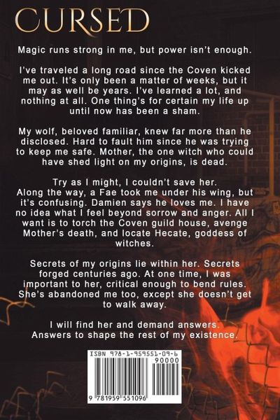 Magic runs strong in me, but power isn't enough. I've traveled a long road since the Coven kicked me out. It's only been a matter of weeks, but it may as well be years. I've learned a lot, and nothing at all. One thing's for certain: my life up until now has been a sham. My wolf, beloved familiar, knew far more than he disclosed. Hard to fault him since he was trying to keep me safe. Mother, the one witch who could have shed light on my origins, is dead. Try as I might, I couldn't save her. Along the way, a Fae took me under his wing, but it's confusing. Damien says he loves me. I have no idea what I feel beyond sorrow and anger. All I want is to torch the Coven guild house, avenge Mother's death, and locate Hecate, goddess of witches. Secrets of my origins lie within her. Secrets forged centuries ago. At one time, I was important to her, critical enough to bend rules. She's abandoned me too, except she doesn't get to walk away. I will find her and demand answers. Answers to shape the rest of my existence.