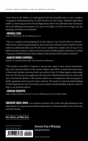 How the interplay of media, race, and one player's defiance created free agency and changed baseball forever Curt Flood in the Media examines the public discourse surrounding Curt Flood (1938-1997), the star center fielder for the St. Louis Cardinals throughout the sixties. In 1969, Flood was traded to the Philadelphia Phillies. At the time, all Major League Baseball players were subject to the reserve clause, which essentially bound a player to work in perpetuity for his original team, unless traded for another player or sold for cash, in which case he worked under the same reserve conditions for the next team. Flood refused the trade on a matter of principle, arguing that Major League Baseball had violated both U.S. antitrust laws and the 13th Amendment's prohibition of involuntary servitude. In a defiant letter to Commissioner Bowie Kuhn asking for his contractual release, Flood infamously wrote, "after twelve years in the major leagues, I do not feel that I am a piece of property to be bought and sold irrespective of my wishes." Most significantly, Flood appeared on national television with Howard Cosell and described himself as a "well-paid slave." Explosive controversy ensued. Khan examines the ways in which the media constructed the case and Flood's persona. By examining the mainstream press, the black press, and primary sources including Flood's autobiography, Khan exposes the complexities of what it means to be a prominent black American athlete--in 1969 and today. Abraham Iqbal Khan, Tampa, Florida, is an assistant professor who holds joint appointments in the department of communication and the department of Africana studies at the University of South Florida.
