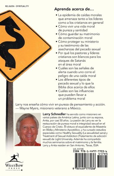 Aprenda acerca de… • La epidemia de caídas morales que amenaza tanto a los líderes como a los cristianos en general • Cómo vivir una vida moral de pureza y santidad • Cómo guarder su matrimonio de comtaminación moral • Cómo proteger su ministerio y su testimonio de las aschanzas del pecado sexual • Porqúe los pastores y líderes cristianos son blancos para los ataques de Satanás en el area moral • Cuáles son las señales de alerta cuando uno corre el peligro de una caída moral • Los deferentes tipos de pecado sexual y lo que la Biblia dice acerca de ellos • Cuáles son las influencias que puenden llevar a un problema moral Larry nos enseña cómo vivir en pureza de pensamiento y acción. -- Wayne Myers, misionero veterano a México
