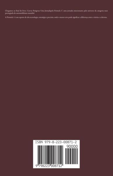 Chegamos ao final do livro: Curvas Perigosas Uma Jornadapela Fórmula 1", uma jornada emocionante pelo universo da categoria mais prestegiada do automobilismo mundial. A Fórmula 1 é um esporte de alta tecnologia, estratégia e precisão, onde o menor erro pode significar a diferença entre a vitória e a derrota.