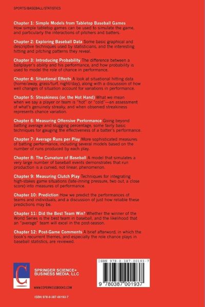 "This book treats a wide variety of topics, including: comparing measures of batting ability; the impact of situation on performance; streaks; measuring a player's clutch performance; and did the best team win the World Series. This book has the appealing quality that you can start reading at almost any chapter and enjoy and understand the journey. And for those of us who are not statisticians by training, we can also learn some statistics." (Zentralblatt für Didaktik der Mathematik, September, 2003)