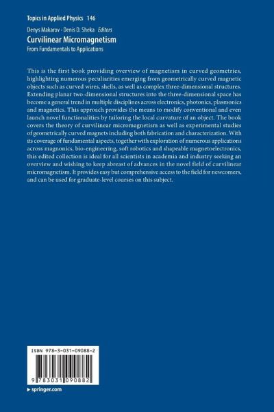 This is the first book providing overview of magnetism in curved geometries, highlighting numerous peculiarities emerging from geometrically curved magnetic objects such as curved wires, shells, as well as complex three-dimensional structures. Extending planar two-dimensional structures into the three-dimensional space has become a general trend in multiple disciplines across electronics, photonics, plasmonics and magnetics. This approach provides the means to modify conventional and even launch novel functionalities by tailoring the local curvature of an object. The book covers the theory of curvilinear micromagnetism as well as experimental studies of geometrically curved magnets including both fabrication and characterization. With its coverage of fundamental aspects, together with exploration of numerous applications across magnonics, bio-engineering, soft robotics and shapeable magnetoelectronics, this edited collection is ideal for all scientists in academia and industry seeking an overview and wishing to keep abreast of advances in the novel field of curvilinear micromagnetism. It provides easy but comprehensive access to the field for newcomers, and can be used for graduate-level courses on this subject.