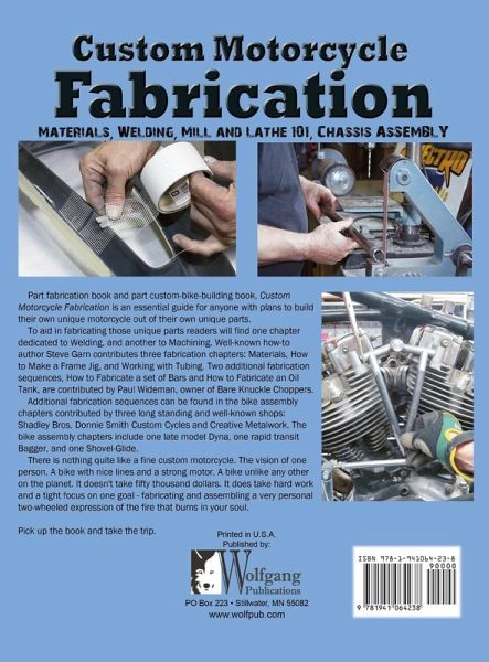 Part fabrication book and part custom-bike-building book, Custom Motorcycle Fabrication is an essential guide for anyone with plans to build their own unique motorcycle out of their own unique parts. To aid in fabricating those unique parts readers will find one chapter dedicated to Welding, and another to Machining. Well-known how-to author Steve Garn contributes three fabrication chapters: Materials, How to Make a Frame Jig, and Working with Tubing. Two additional fabrication sequences, How to Fabricate a set of Bars and How to Fabricate an Oil Tank, are contributed by Paul Wideman, owner of Bare Knuckle Choppers. Additional fabrication sequences can be found in the bike assembly chapters contributed by three long standing and well-known shops: Shadley Bros, Donnie Smith Custom Cycles and Creative Metalwork. The bike assembly chapters include one late model Dyna, one rapid transit Bagger, and one Shovel-Glide. There is nothing quite like a fine custom motorcycle. The vision of one person. A bike with nice lines and a strong motor. A bike unlike any other on the planet. It doesn't take fifty thousand dollars. It does take hard work and a tight focus on one goal - fabricating and assembling a very personal two-wheeled expression of the fire that burns in your soul.