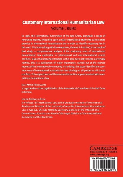 Customary International Humanitarian Law, Volume I: Rules is a comprehensive analysis of the customary rules of international humanitarian law applicable in international and non-international armed conflicts. In the absence of ratifications of important treaties in this area, this is clearly a publication of major importance, carried out at the express request of the international community. In so doing, this study identifies the common core of international humanitarian law binding on all parties to all armed conflicts.