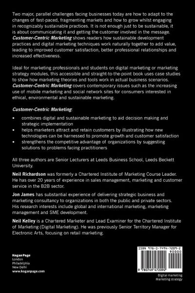 Two of the major parallel challenges facing businesses today are how to adapt to the changes of fast-paced, fragmenting markets and how to grow a business whilst engaging in recognisably sustainable practices. It is not enough to just be sustainable, it is about communicating it and getting the customer involved in the message. Customer-Centric Marketing shows readers how sustainable development practices and digital marketing techniques work naturally together to add value, leading to improved customer satisfaction, better professional relationships and increased effectiveness.
