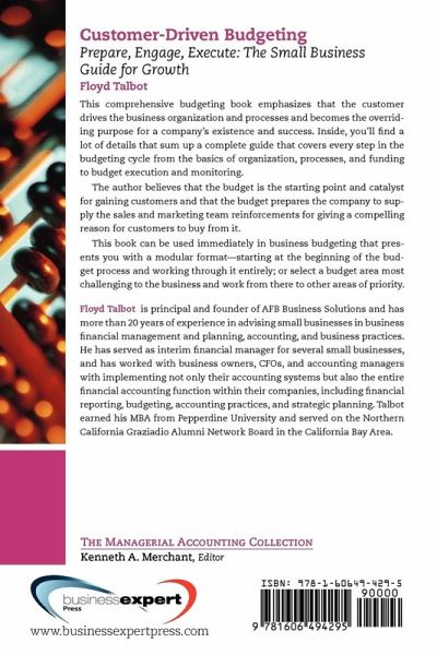 This comprehensive budgeting book emphasizes that the customer drives the business organization and processes and becomes the overriding purpose for a company's existence and success. Customer-driven Budgeting offers a complete guide that covers every step in the budgeting cycle from the basics of organization, processes, and funding to budget execution and monitoring. It emphasizes that the budget is the starting point and catalyst for gaining customers. The budget prepares the company to supply the sales and marketing team reinforcements for giving a compelling reason for customers to buy from it.