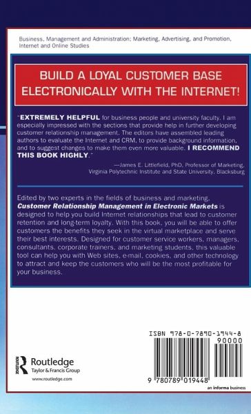 Edited by two experts in the fields of business and marketing, Customer Relationship Management in Electronic Markets is designed to help you build Internet relationships that lead to customer retention and long-term loyalty. With this book, you will be able to offer customers the benefits they seek in the virtual marketplace and serve their best interests. Designed for customer service workers, managers, consultants, corporate trainers, and marketing students, this valuable tool can help you with Web sites, e-mails, cookies, and other technology to attract and keep the customers who will be the most profitable for your business.