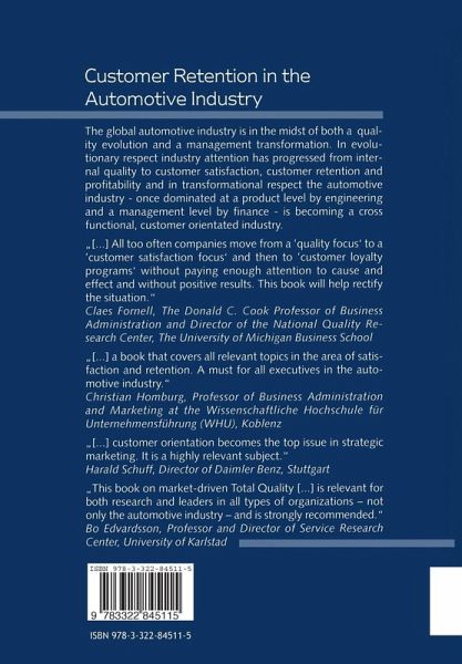 The intensely competitive global automotive industry is in the midst of both a quality evolution and management transfonnation. In an evolutionary fashion, industry attention has progressed from a focus on internal quality, to external perceptions of customer satisfaction, to subsequent customer retention and profitability. More transfonnational is the change in the way automotive companies operate and manage themselves. An industry once dominated at a product level by engineering and a management level by fmance is becoming a cross functional, customer oriented industry. Understanding the links from quality to satisfaction to retention has become a key to financial and organizational success as the automotive industry enters the new millennium. We are fortunate, in this regard, to have assembled a diverse group of both academic and automotive industry contributors to offer a variety of insights into these links. After describing the ongoing changes in the automotive industry in more detail, this introductory chapter describes a framework for linking quality, satisfaction, and retention. The framework is used to introduce each of the individual chapters and highlight its contribution. Although our primary emphasis is on the automotive industry, the implications of the research and lessons learned extend far beyond. If anything, the automotive industry is a prototypical competitive, global industry that faces a myriad of business issues. These include, among others, issues pertaining to product development, service development, process improvement, product quality, service quality, supplier relationships, internal customer satisfaction, external customer satisfaction, retailing, promotion, pricing, franchising, and technology management.