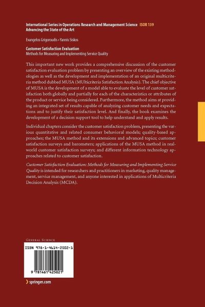 Customer Satisfaction Evaluation: Methods for Measuring and Implementing Service Quality is intended for researchers and practitioners in marketing, quality management, service management, and anyone interested in applications of Multicriteria Decision Analysis (MCDA).