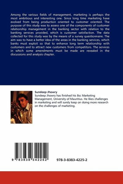 Among the various fields of management, marketing is perhaps the most ambitious and interesting one. Since long time marketing have evolved from being production oriented to customer oriented. The purpose of this study was to assess one of the components of customer relationship management in the banking sector with relation to the banking services provided, which is customer satisfaction. The data collected for this study was by the means of a survey questionnaire. The aim was to have a better idea of the areas in the banking services, which banks must exploit so that to enhance long term relationship with customers and to attract new customers from competitors. The services in which some amendments must be made are revealed in the discussions and analysis chapter.