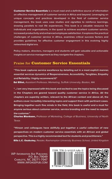 Customer Service Essentials is a must-read and a definitive source of information on effective management of customer service in Africa and beyond. Leveraging on unique concepts and practices developed in the field of customer service management, this book uses case studies and vignettes to reinforce learnings, drawing parallels to real life experiences. The book is a valuable resource for individuals and organizations, in the quest to achieve excellent customer service, increased productivity and enhanced employee satisfaction. It explores the practical challenges of customer service in Africa, examines critical success factors and provides guidelines for effective customer engagement in this evolving highly networked digital era. Policy makers, directors, managers and students will gain valuable and actionable insights on service management as they navigate the chapters.