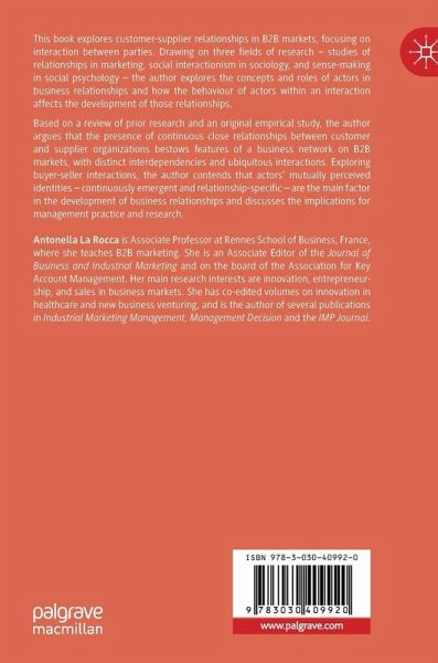 This book explores customer-supplier relationships in B2B markets focusing on interaction between parties. Drawing on three fields of research - studies of relationships in marketing, social interactionism in sociology, and sense-making in social psychology - the author explores the concepts and roles of actors in business relationships and how the behaviour of actors within an interaction affects the development of those relationships.