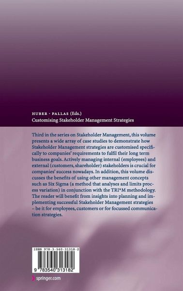 The third in the series on Stakeholder Management, this volume presents a wide array of case studies to demonstrate how Stakeholder Management strategies are customized specifically to companies' requirements to fulfill their long term business goals. In addition, this volume discusses the benefits of using other management concepts such as Six Sigma (a method that analyses and limits process variation) in conjunction with the TRI*M methodology.