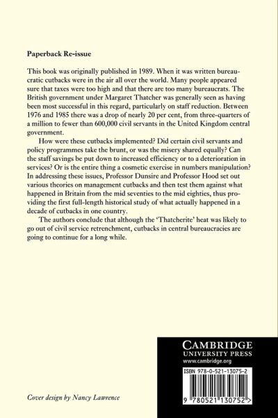 Bureaucratic cutbacks are in the air all over the world. Many people appear sure that taxes are too high and that there are too many bureaucrats. The British government under Margaret Thatcher is generally seen as having been most successful in this regard, particularly on staff reduction. Between 1976 and 1985 there was a drop of nearly 20 per cent, from three-quarters of a million to fewer than 600,000 civil servants in the United Kingdom central government. How were these cutbacks implemented? Did certain civil servants and policy programmes take the brunt, or was the misery shared equally? Or is the entire thing a cosmetic exercise in numbers manipulation? In addressing these issues, Professor Dunsire and Professor Hood set out existing theories on management cutbacks and then test them against what happened in Britain, thus providing a full-length historical study of what actually happened in a decade of cutbacks in one country.