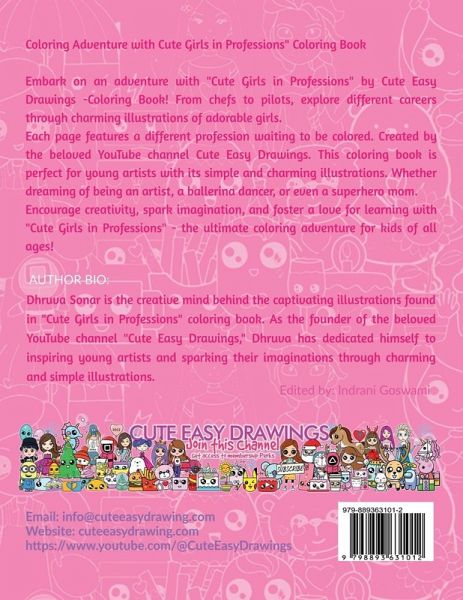 Coloring Adventure with Cute Girls in Professions" Coloring Book Embark on an adventure with "Cute Girls in Professions" by Cute Easy Drawings - Coloring Book! From chefs to pilots, explore different careers through charming illustrations of adorable girls. Each page features a different profession waiting to be colored. Created by the beloved YouTube channel Cute Easy Drawings. This coloring book is perfect for young artists with its simple and charming illustrations. Whether dreaming of being an artist, a ballerina dancer, or even a superhero mom. Encourage creativity, spark imagination, and foster a love for learning with "Cute Girls in Professions" - the ultimate coloring adventure for kids of all ages!