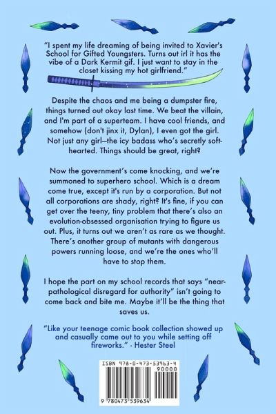 "I spent my life dreaming of being invited to Xavier's School for Gifted Youngsters. Turns out irl it has the vibe of a Dark Kermit gif. I just want to stay in the closet kissing my hot girlfriend." Despite the chaos and me being a dumpster fire, things turned out okay last time. We beat the villain, and I'm part of a superteam. I have cool friends, and somehow (don't jinx it, Dylan), I even got the girl. Not just any girl-the icy badass who's secretly soft-hearted. Things should be great, right? Now the government's come knocking, and we're summoned to superhero school. Which is a dream come true, except it's run by a corporation. But not all corporations are shady, right? It's fine, if you can get over the teeny, tiny problem that there's also an evolution-obsessed organisation trying to figure us out. Plus, it turns out we aren't as rare as we thought. There's another group of mutants with dangerous powers running loose, and we're the ones who'll have to stop them. I hope the part on my school records that says "near-pathological disregard for authority" isn't going to come back and bite me. Maybe it'll be the thing that saves us.