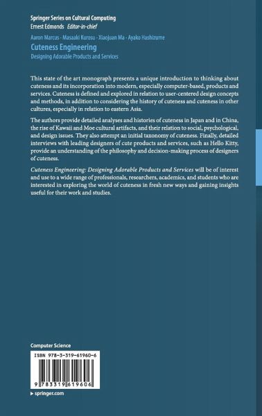 This state of the art monograph presents a unique introduction to thinking about cuteness and its incorporation into modern, especially computer-based, products and services. Cuteness is defined and explored in relation to user-centered design concepts and methods, in addition to considering the history of cuteness and cuteness in other cultures, especially in relation to eastern Asia.