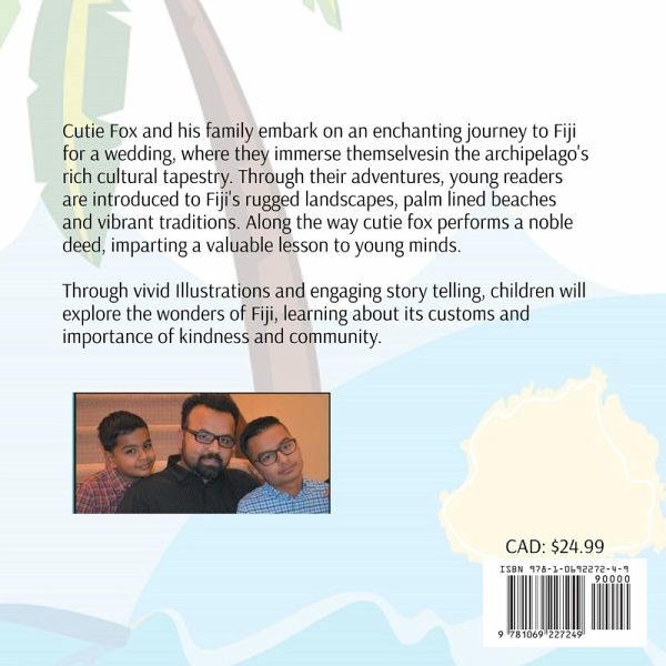 Cutie Fox and his family embark on an enchanting journey to Fiji for a wedding, where they immerse themselves in the archipelago's rich cultural tapestry. Through their adventures, young readers are introduced to Fiji's rugged landscapes, palm-lined beaches, and vibrant traditions. Along the way, Cutie Fox performs a noble deed, imparting a valuable lesson to young minds. This story not only captivates with its narrative but also serves as an educational window into Fijian culture, highlighting activities such as traditional village visits, participation in kava ceremonies, and experiencing the mesmerizing meke dance performances. Through vivid illustrations and engaging storytelling, children will explore the wonders of Fiji, learning about its customs and the importance of kindness and community.