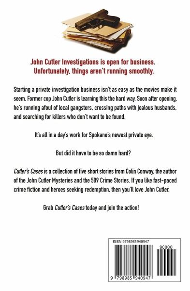 John Cutler Investigations is open for business. Unfortunately, things aren't running smoothly Starting a private investigation business isn't as easy as the movies make it seem. Former cop John Cutler is learning this the hard way. Soon after opening, he's running afoul of local gangsters, crossing paths with jealous husbands, and searching for killers who don't want to be found. It's all in a day's work for Spokane's newest private eye. But did it have to be so damn hard? Cutler's Cases is a collection of five short stories from Colin Conway, the author of the John Cutler Mysteries and the 509 Crime Stories. If you like fast-paced crime fiction and heroes seeking redemption, then you'll love John Cutler. Grab Cutler's Cases today and join the action! (NOTE: The John Cutler Mysteries occur in the same world as the 509 Crime Stories. The first book in that series is The Side Hustle. The John Cutler stories begin fifteen years earlier so some of the officers in the 509 are seen at the beginning of their careers.)