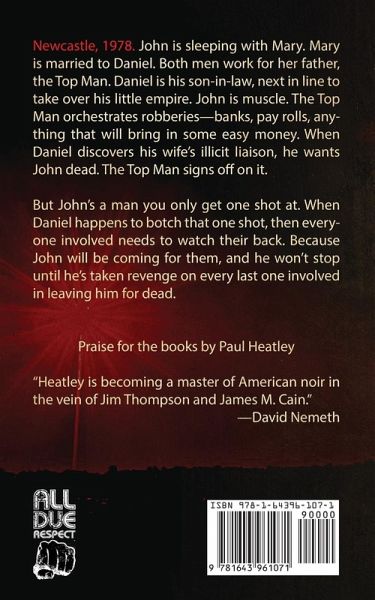 Newcastle, 1978. John is sleeping with Mary. Mary is married to Daniel. Both men work for her father, the Top Man. Daniel is his son-in-law, next in line to take over his little empire. John is muscle. The Top Man orchestrates robberies-banks, pay rolls, anything that will bring in some easy money. When Daniel discovers his wife's illicit liaison, he wants John dead. The Top Man signs off on it. But John's a man you only get one shot at. When Daniel happens to botch that one shot, then everyone involved needs to watch their back. Because John will be coming for them, and he won't stop until he's taken revenge on every last one involved in leaving him for dead. Praise for CUTTHROAT: "Paul Heatley remains a master of savagery, of bloody men and how they live, how they die, how they kill." -Rob Pierce, author of Tommy Shakes Praise for Paul Hartley: "Heatley is becoming a master of American noir in the vein of Jim Thompson and James M. Cain." -David Nemeth