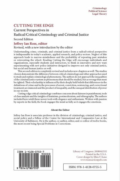 Cutting the Edge by Jeffrey Ian Ross will encourage individuals and organizations, especially students and instructors, to innovatively identify ways of experimenting with new policy initiatives designed to improve not only criminal justice, but social and human justice as well.