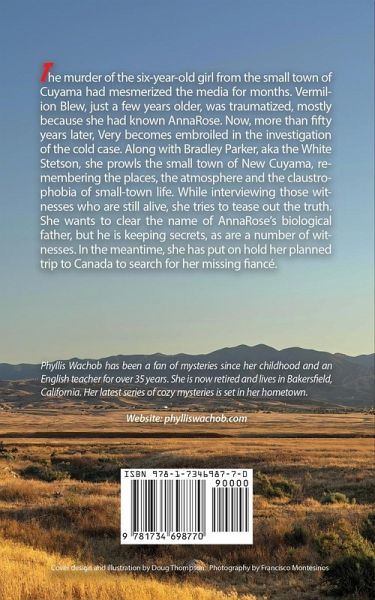 The murder of the six-year-old girl from the small town of Cuyama had mesmerized the media for months. Vermilion Blew, just a few years older, was traumatized, mostly because she had known AnnaRose. Now, more than fifty years later, Very becomes embroiled in the investigation of the cold case. Along with Bradley Parker, aka the White Stetson, she prowls the small town of New Cuyama, remembering the places, the atmosphere and the claustrophobia of small-town life. While interviewing those witnesses who are still alive, she tries to tease out the truth. She wants to clear the name of AnnaRose's biological father, but he is keeping secrets, as are a number of witnesses. In the meantime, she has put on hold her planned trip to Canada to search for her missing fiancé.