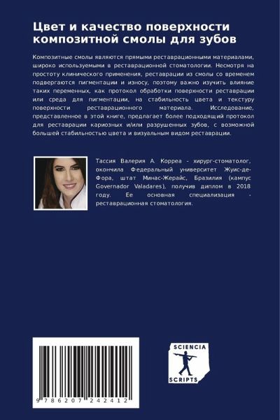 Kompozitnye smoly qwlqütsq prqmymi restawracionnymi materialami, shiroko ispol'zuemymi w restawracionnoj stomatologii. Nesmotrq na prostotu klinicheskogo primeneniq, restawracii iz smoly so wremenem podwergaütsq pigmentacii i iznosu, poätomu wazhno izuchit' wliqnie takih peremennyh, kak protokol obrabotki powerhnosti restawracii ili sreda dlq pigmentacii, na stabil'nost' cweta i texturu powerhnosti restawracionnogo materiala. Issledowanie, predstawlennoe w ätoj knige, predlagaet bolee podhodqschij protokol dlq restawracii karioznyh i/ili razrushennyh zubow, s wozmozhnoj bol'shej stabil'nost'ü cweta i wizual'nym widom restawracii.