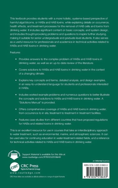 Provides students with a holistic, systems-based perspective of Harmful Algal Blooms, or HABs and HAB toxins while explaining details on occurrence, health effects, and treatment processes for the removal of HAB cells and toxins from drinking water. Itâ s also useful for professionals interested in HABs and HAB toxins in drinking water.