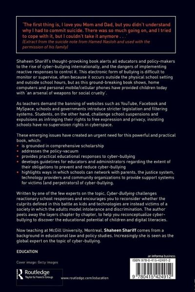 This book looks in depth at the emerging issue of cyber-bullying. In this increasingly digital world cyber-bullying has emerged as an electronic form of bullying that is difficult to monitor or supervise because it often occurs outside the physical school setting and outside school hours on home computers and personal phones. These web-based and mobile technologies are providing young people with what has been described as: 'an arsenal of weapons for social cruelty'. These emerging issues have created an urgent need for a practical book grounded in comprehensive scholarship that addresses the policy-vacuum and provides practical educational responses to cyber-bullying. Written by one of the few experts on the topic Cyber-Bullying develops guidelines for teachers, head teachers and administrators regarding the extent of their obligations to prevent and reduce cyber-bullying. The book also highlights ways in which schools can network with parents, police, technology providers and community organizations to provide support systems for victims (and perpetrators) of cyber-bullying.