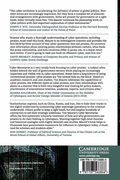 Cyber Mercenaries explores the secretive relationships between states and hackers. As cyberspace has emerged as the new frontier for geopolitics, states have become entrepreneurial in their sponsorship, deployment, and exploitation of hackers as proxies to project power. Such modern-day mercenaries and privateers can impose significant harm undermining global security, stability, and human rights. These state-hacker relationships therefore raise important questions about the control, authority, and use of offensive cyber capabilities. While different countries pursue different models for their proxy relationships, they face the common challenge of balancing the benefits of these relationships with their costs and the potential risks of escalation. This book examines case studies in the United States, Iran, Syria, Russia, and China for the purpose of establishing a framework to better understand and manage the impact and risks of cyber proxies on global politics.