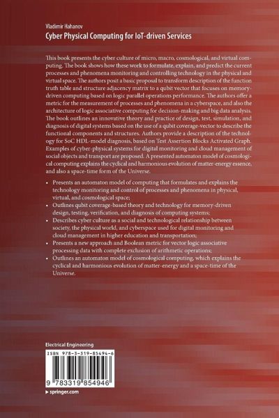 This book presents the cyber culture of micro, macro, cosmological, and virtual computing. The book shows how these work to formulate, explain, and predict the current processes and phenomena monitoring and controlling technology in the physical and virtual space.The authors posit a basic proposal to transform description of the function truth table and structure adjacency matrix to a qubit vector that focuses on memory-driven computing based on logic parallel operations performance. The authors offer a metric for the measurement of processes and phenomena in a cyberspace, and also the architecture of logic associative computing for decision-making and big data analysis.The book outlines an innovative theory and practice of design, test, simulation, and diagnosis of digital systems based on the use of a qubit coverage-vector to describe the functional components and structures. Authors provide a description of the technology for SoC HDL-model diagnosis, based on Test Assertion Blocks Activated Graph. Examples of cyber-physical systems for digital monitoring and cloud management of social objects and transport are proposed. A presented automaton model of cosmological computing explains the cyclical and harmonious evolution of matter-energy essence, and also a space-time form of the Universe.