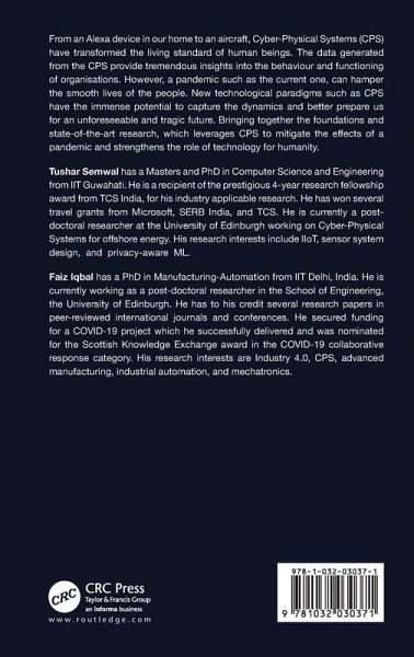 A Cyber-Physical System (CPS) is an integration of cyber components with their physical counterparts. A cyber unit could be either a software or hardware. Physical components are those objects, which are governed by the law of physics. CPS have transformed how we interact with the physical world, ranging from sensing the environmental parameters to controlling a complex manufacturing industry. The current pandemic has had catastrophic implications people all across the world in terms of health and economy. This book presents the significance and practicality of CPS in a pandemic situation. It provides a strong foundation to the CPS while also incorporating the latest theoretical advances and practical applications to alleviate the state of a pandemic. The book covers... Theoretical background and application-oriented overview of the different CPS models Impact of COVID-19 and similar pandemics on the engineering aspects of various industries and organisations Exciting and impactful CPS based solutions to the different pandemic situations Security and privacy in CPS when applied to critical and sensitive pandemic affected environment Describes the government-funded projects and work using CPS in real-world scenarios The book provides a unique and fresh exposure to CPS employed in a pandemic situation. It brings together researchers, practitioners, academics, experts, and industry professionals from around the world to share their knowledge and experience.
