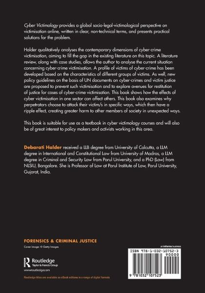 Cyber Victimology provides a global socio-legal-victimological perspective on victimisation online, written in clear, non-technical terms, and presents practical solutions for the problem. Halder qualitatively analyses the contemporary dimensions of cyber-crime victimisation, aiming to fill the gap in the existing literature on this topic. A literature review, along with case studies, allows the author to analyse the current situation concerning cyber-crime victimisation.