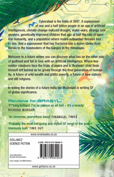 The world: 'Cyberabad' is the India of 2047, a new, muscular superpower of one and a half billion people in an age of artificial intelligences, climate-change induced drought, water-wars, strange new genders, genetically improved children that age at half the rate of baseline humanity and a population where males out-number females four to one. India herself has fractured into a dozen states fromKerala to the headwaters of the Ganges in the Himalayas.