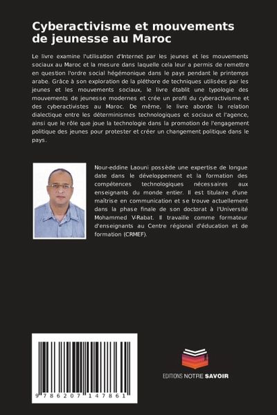 Le livre examine l'utilisation d'Internet par les jeunes et les mouvements sociaux au Maroc et la mesure dans laquelle cela leur a permis de remettre en question l'ordre social hégémonique dans le pays pendant le printemps arabe. Grâce à son exploration de la pléthore de techniques utilisées par les jeunes et les mouvements sociaux, le livre établit une typologie des mouvements de jeunesse modernes et crée un profil du cyberactivisme et des cyberactivistes au Maroc. De même, le livre aborde la relation dialectique entre les déterminismes technologiques et sociaux et l'agence, ainsi que le rôle que joue la technologie dans la promotion de l'engagement politique des jeunes pour protester et créer un changement politique dans le pays.