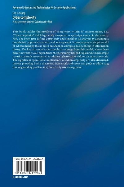 This book tackles the problem of complexity within IT environments, i.e., "Cybercomplexity," which is generally recognized as a principal source of cybersecurity risk. The book first defines complexity and simplifies its analysis by assuming a probabilistic approach to security risk management. It then proposes a simple model of cybercomplexity that is based on Shannon entropy, a basic concept in information theory. The key drivers of cybercomplexity emerge from this model, where these drivers reveal the scale-dependence of cybersecurity risk and explain why macroscopic security controls are required to address cybersecurity risk on an enterprise scale. The significant operational implications of cybercomplexity are also discussed, thereby providing both a theoretical framework and a practical guide to addressing this longstanding problem in cybersecurity risk management.
