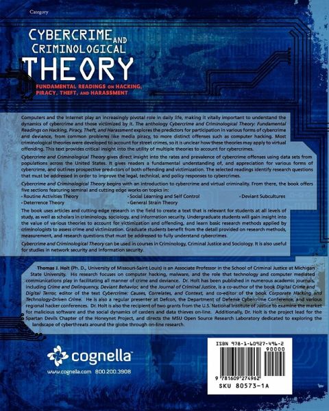 Computers and the Internet play an increasingly pivotal role in daily life, making it vitally important to understand the dynamics of cybercrime and those victimized by it. The anthology Cybercrime and Criminological Theory: Fundamental Readings on Hacking, Piracy, Theft, and Harassment explores the predictors for participation in various forms of cybercrime and deviance, from common problems like media piracy, to more distinct offenses such as computer hacking. Most criminological theories were developed to account for street crimes, so it is unclear how these theories may apply to virtual offending. This text provides critical insight into the utility of multiple theories to account for cybercrimes. Cybercrime and Criminological Theory gives direct insight into the rates and prevalence of cybercrime offenses using data sets from populations across the United States. It gives readers a fundamental understanding of, and appreciation for various forms of cybercrime, and outlines prospective predictors of both offending and victimization. The selected readings identify research questions that must be addressed in order to improve the legal, technical, and policy responses to cybercrimes. Cybercrime and Criminological Theory begins with an introduction to cybercrime and virtual criminality. From there, the book offers five sections featuring seminal and cutting edge works on topics in: - Routine Activities Theory - Deterrence Theory - Social Learning and Self Control - General Strain Theory - Deviant Subcultures The book uses articles and cutting-edge research in the field to create a text that is relevant for students at all levels of study, as well as scholars in criminology, sociology, and information security. Undergraduate students will gain insight into the value of various theories to account for victimization and offending, and learn basic research methods applied by criminologists to assess crime and victimization. Graduate students benefit from the detail provided on research methods, measurement, and research questions that must be addressed to fully understand cybercrimes. Thomas J. Holt earned his Ph.D. at the University of Missouri, Saint Louis. He is currently an Associate Professor in the School of Criminal Justice at Michigan State University. His areas of research include computer hacking, malware, and the role played by technology and computer-mediated communications in facilitating crime and deviance. Dr. Holt is the co-author of Digital Crime and Digital Terror, and the co-editor of Corporate Hacking and Technology-Driven Crime. He is also the editor of the book Cybercrime: Causes, Correlates, and Context. His work has also been published in numerous academic journals, including Crime and Delinquency, Deviant Behavior, and the Journal of Criminal Justice. Dr. Holt received two grants from the U.S. National Institute of Justice to examine the market for malicious software, and the social dynamics of carders and on-line data thieves. Additionally, he is the project lead for the Spartan Devils Chapter of the Honeynet Project, and directs the MSU Open Source Research Laboratory, which explores cyber threats around the globe through on-line research.