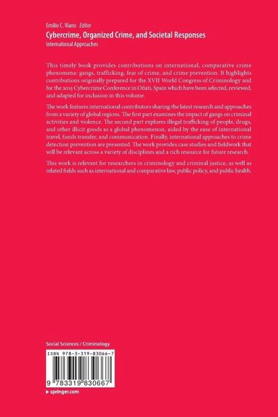 1. Preface.- Part I. Cybercrime.- 2. Cybercrime: Definition, Typology and Criminalization.- 3. Cyber Grooming and Gender in Terrorism Recruiting: The Law and Protecting the Vulnerable.- 4. Understanding Attribution Bias and Reasons Behind Internet Infidelity in India.- 5. Global Threat but National Legislation: How to Adapt to the New Cyberspace Society.- 6. Criminal Procedure in Cyberspace: The Challenge of the Digital Era.- 7. The Use of Information and Communications Technology in Criminal Procedure in the United States.- Part II. Organized Crime and Trafficking.- 8. The Mafia Psychology: The Study of the N'Drangheta and the Cosa Nostra.- 9. Social Network Analysis and Organized Crime Investigation: Adequacy to Networks, Organized Cybercrime, Portuguese Framework.- 10. Drug Trafficking Trends and How to Counteract Them: A Case Study of Vietnam.- 11. Post-Trafficking Victims in Mexico and Their Reintegration Process: An Analysis of the Government's Response.- 12. Measures in the Background of Piracy in the Entertainment and Software Industry in India.- Part III. Society's Responses to Crime.- 13. Crime and Anti-Social Behavior in Male Adolescents: An Exploratory Study in the City of Ribeirao Preto.- 14. "Mareros" and "Pandilleros" in Honduras: The Reintegration of Youth Gang Members .- 15. The Surveillance Society: A Criminological Perspective.- 16. An Investigation into Criminal Regulatory Science: An Approach from the Perspective of "Law and Economics".- 17. Restorative Justice in the Slovak Republic.- 18. The Judicial Reform Process in Mexico: Examining the Role of Institutional Trust.- 19. Smart Egwu Out Moud operiende.