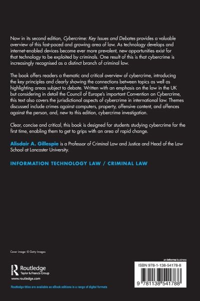 Now in its second edition, Cybercrime: Key Issues and Debates provides a valuable overview of this fast-paced and growing area of law. As technology develops and internet-enabled devices become ever more prevalent, new opportunities exist for that technology to be exploited by criminals. One result of this is that cybercrime is increasingly recognised as a distinct branch of criminal law.
