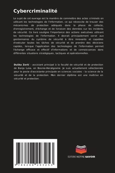 Le sujet de cet ouvrage est la manière de commettre des actes criminels en utilisant les technologies de l'information, ce qui nécessite de trouver des mécanismes de protection adéquats dans la phase de collecte, d'enregistrement, d'échange et de livraison des données sur les incidents de sécurité. Ce livre souligne l'importance des actions exécutives utilisant les technologies de l'information. Il devrait principalement servir aux gestionnaires du système de sécurité à être innovants et capables d'exécuter toutes les tâches de sécurité et de prendre des décisions rapides, lorsque l'application des technologies de l'information permet l'échange efficace et effectif d'informations et de connaissances dans différentes situations stratégiques, tactiques et opérationnelles.