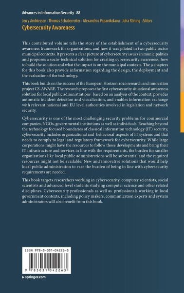 This book builds on the success of the European Horizon 2020 research and innovation project CS-AWARE. The research proposes the first cybersecurity situational awareness solution for local public administrations based on an analysis of the context, provides automatic incident detection and visualization, and enables information exchange with relevant national and EU level authorities involved in legislation and network security.