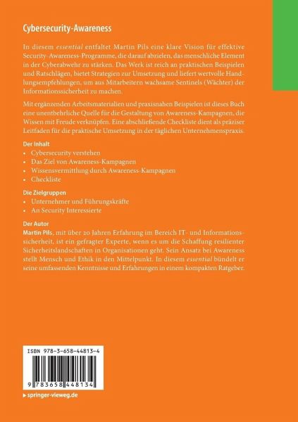In diesem essential entfaltet Martin Pils eine klare Vision für effektive Security-Awareness-Programme, die darauf abzielen, das menschliche Element in der Cyberabwehr zu stärken. Das Werk ist reich an praktischen Beispielen und Ratschlägen, bietet Strategien zur Umsetzung und liefert wertvolle Handlungsempfehlungen, um aus Mitarbeitern wachsame Sentinels (Wächter) der Informationssicherheit zu machen.