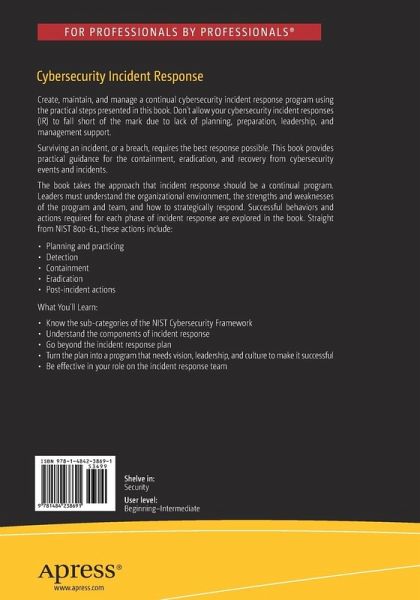 Create, maintain, and manage a continual cybersecurity incident response program using the practical steps presented in this book. Don't allow your cybersecurity incident responses (IR) to fall short of the mark due to lack of planning, preparation, leadership, and management support.