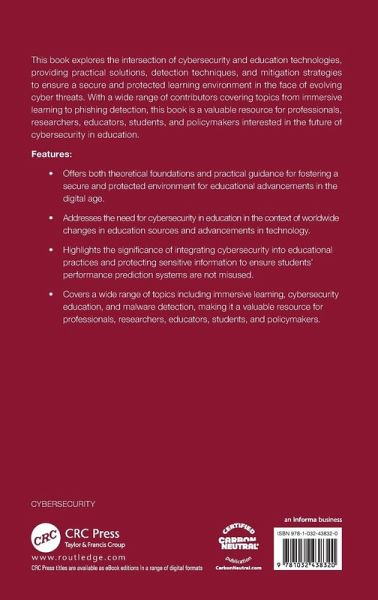 This book explores the intersection of cybersecurity and education technologies, providing practical solutions, detection techniques, and mitigation strategies to ensure a secure and protected learning environment in the face of evolving cyber threats. With a wide range of contributors covering topics from immersive learning to phishing detection, this book is a valuable resource for professionals, researchers, educators, students, and policymakers interested in the future of cybersecurity in education.